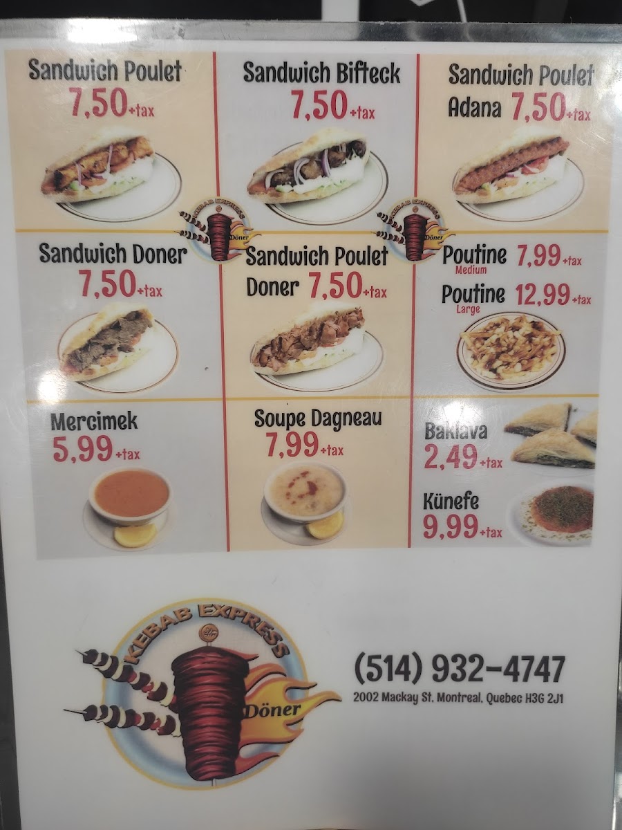 Welcome to Restaurant Kebab Express, a delightful Turkish eatery nestled at 2002 Mackay St, Montreal, Quebec. This local gem has gained a reputation for its authentic and flavorful offerings, making it a must-visit for both residents and students looking for a quick yet satisfying meal.